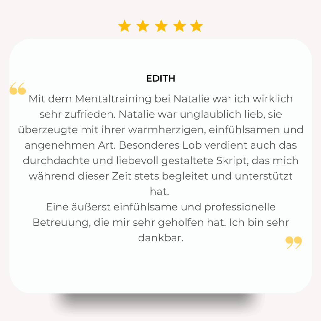 In meinem individuellen 1:1 Mentaltraining begleite ich Dich auf Deinem Weg. Ich möchte ich Dir wirkungsvolle Techniken und Tools an die Hand geben, mit denen Du Sorgen, Ängste und Glaubenssätze langfristig überwinden kannst.
