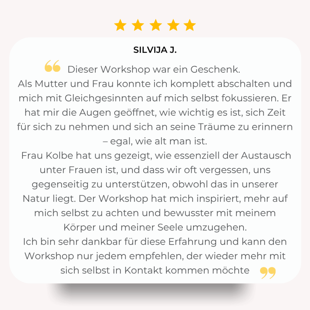 Jeder Workshop ist eine Einladung, innezuhalten, Dich selbst besser kennenzulernen und gleichzeitig zu entspannen.