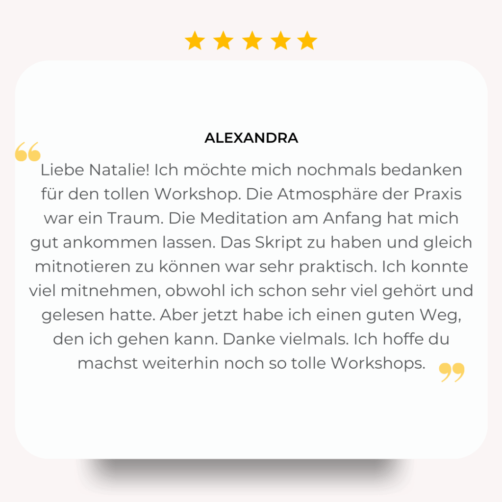In meinen monatlichen Workshops erwartet Dich eine kleine, exklusive Runde von